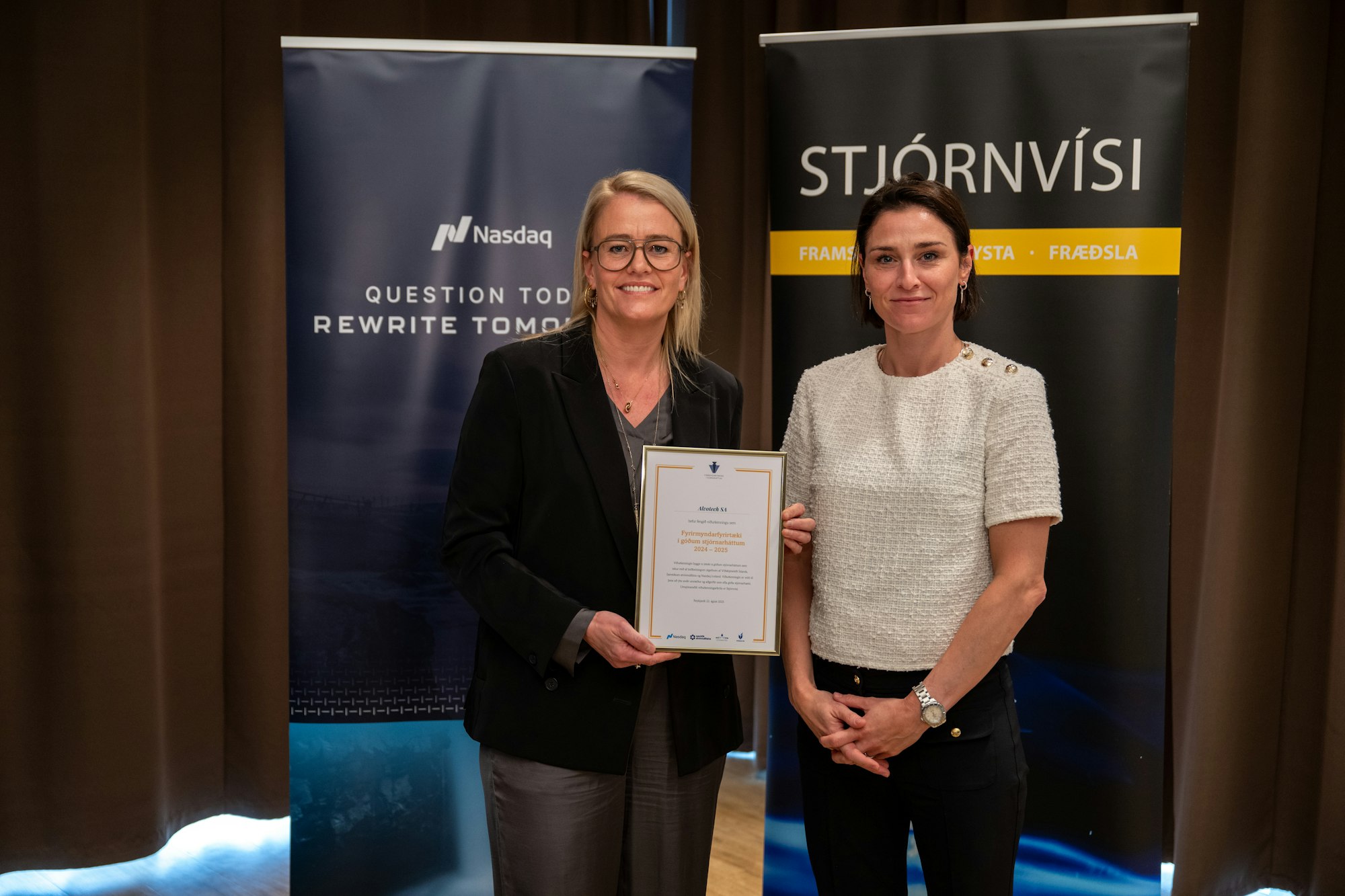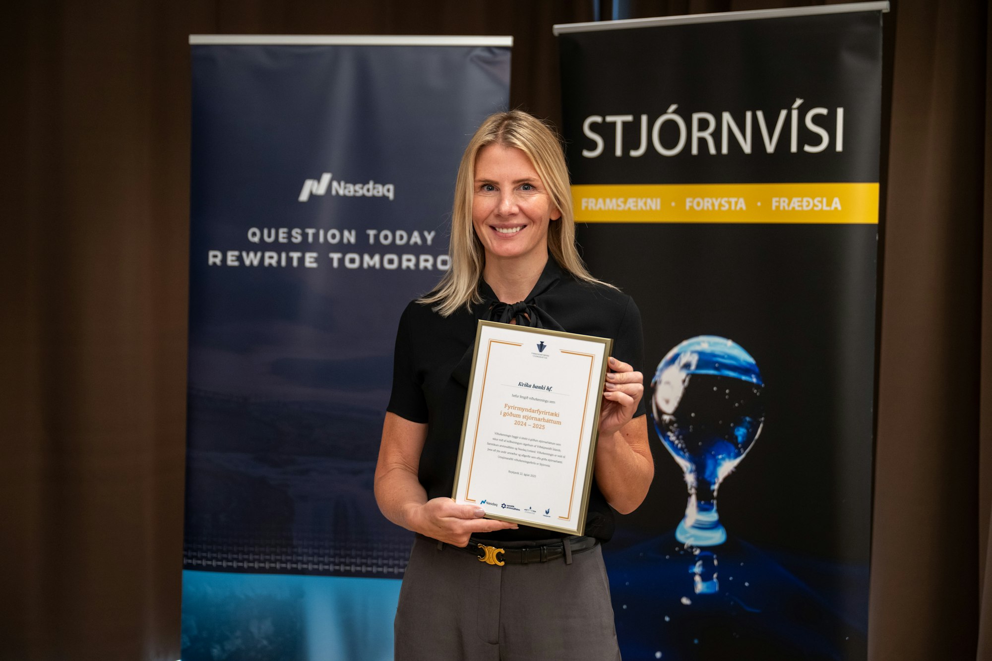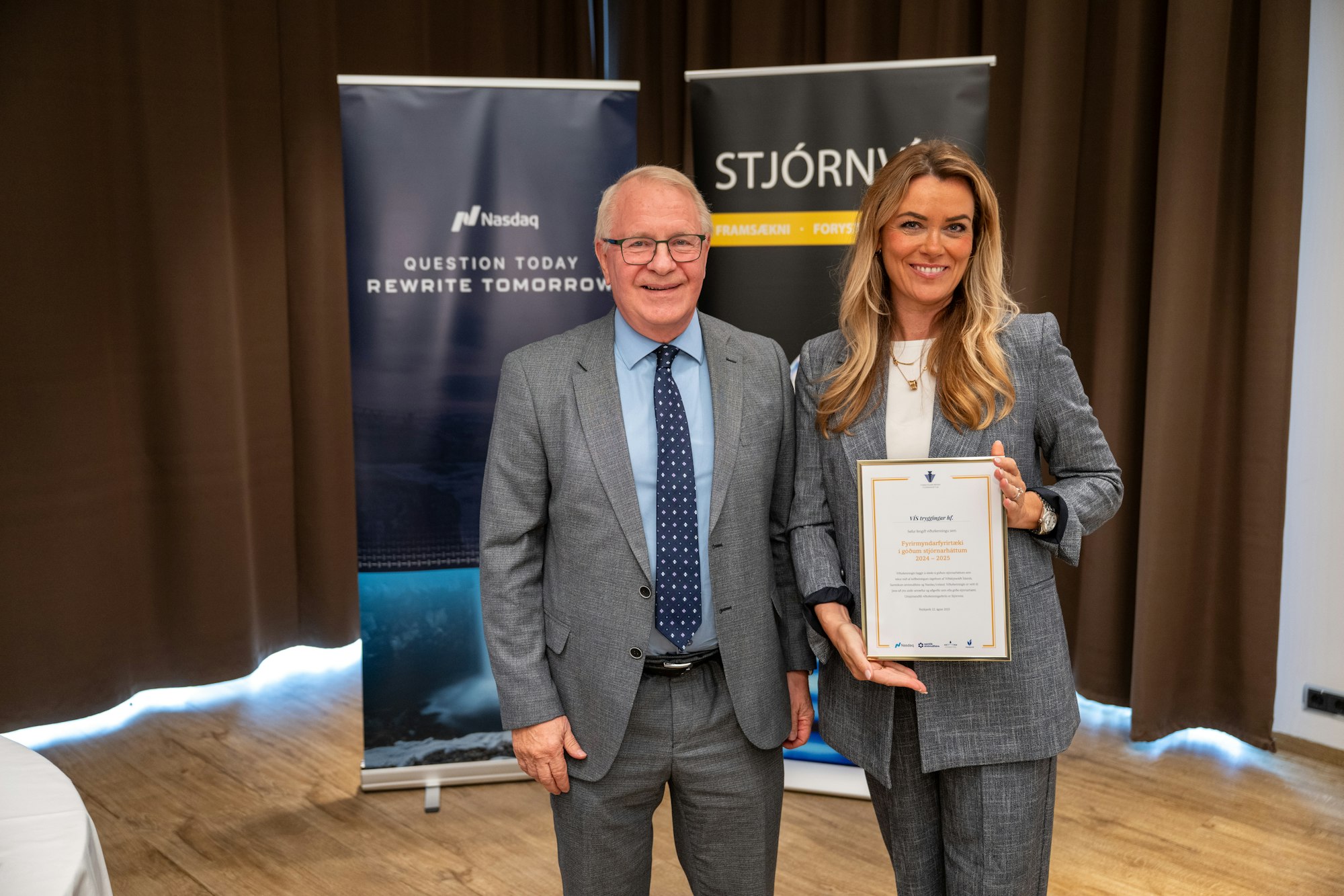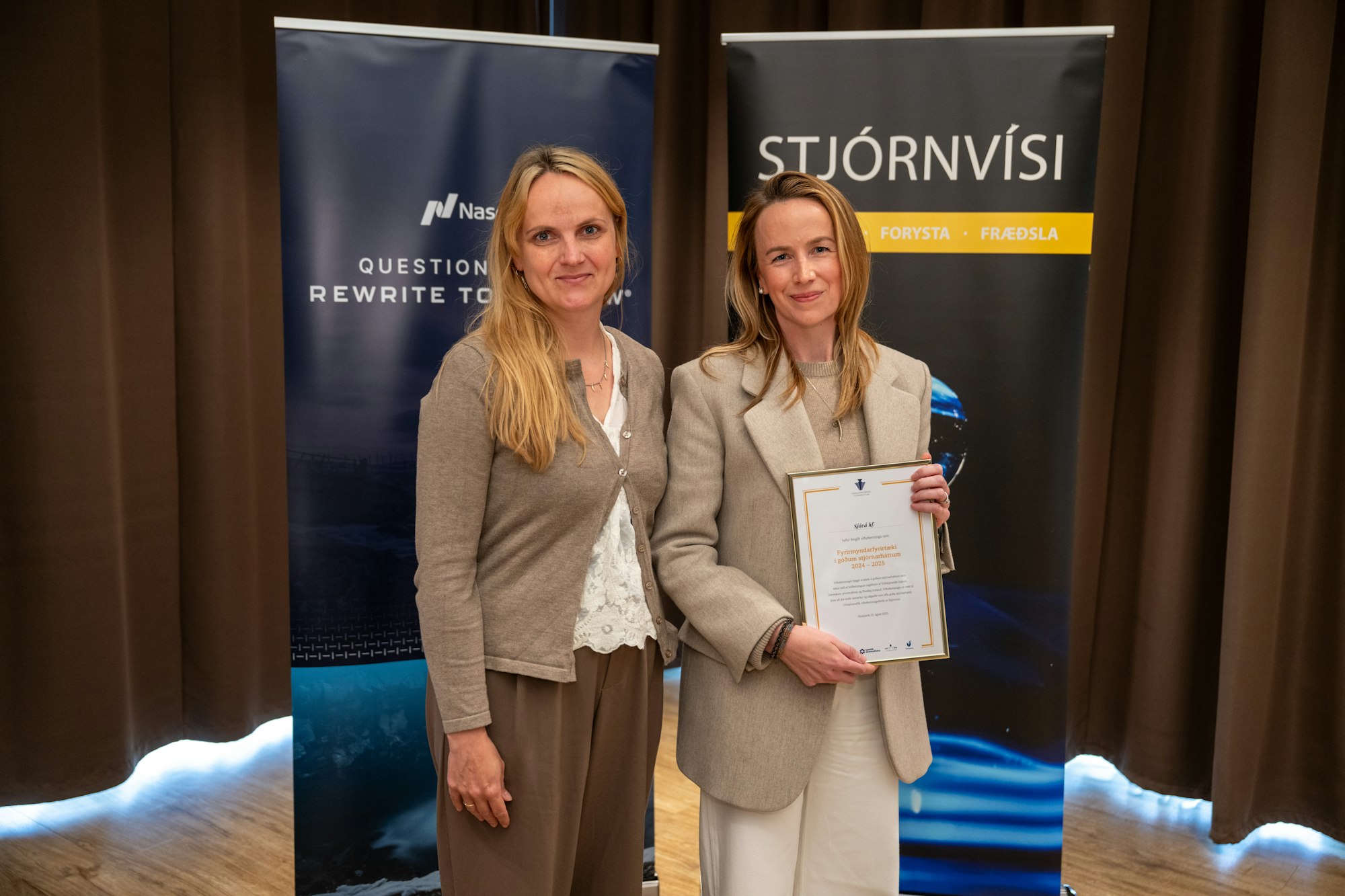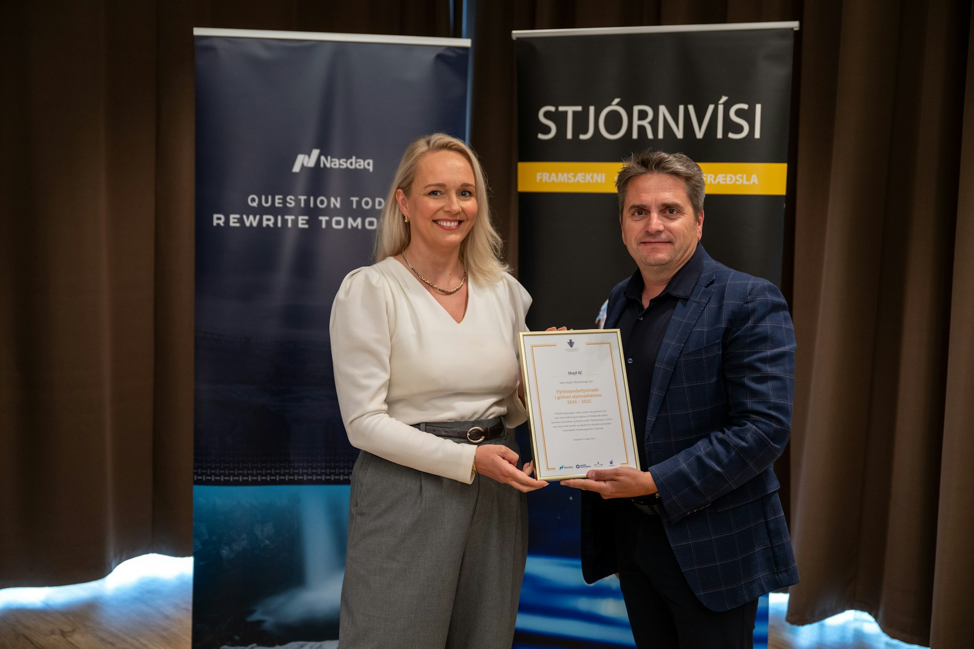 Á hátíðlegri athöfn á Nauthóli í dag hlutu 17 íslensk fyrirtæki nafnbótina Fyrirmyndarfyrirtæki í góðum stjórnarháttum. Viðurkenningarnar eru veittar af Stjórnvísi, Viðskiptaráði Íslands, Samtökum atvinnulífsins og Nasdaq Iceland.