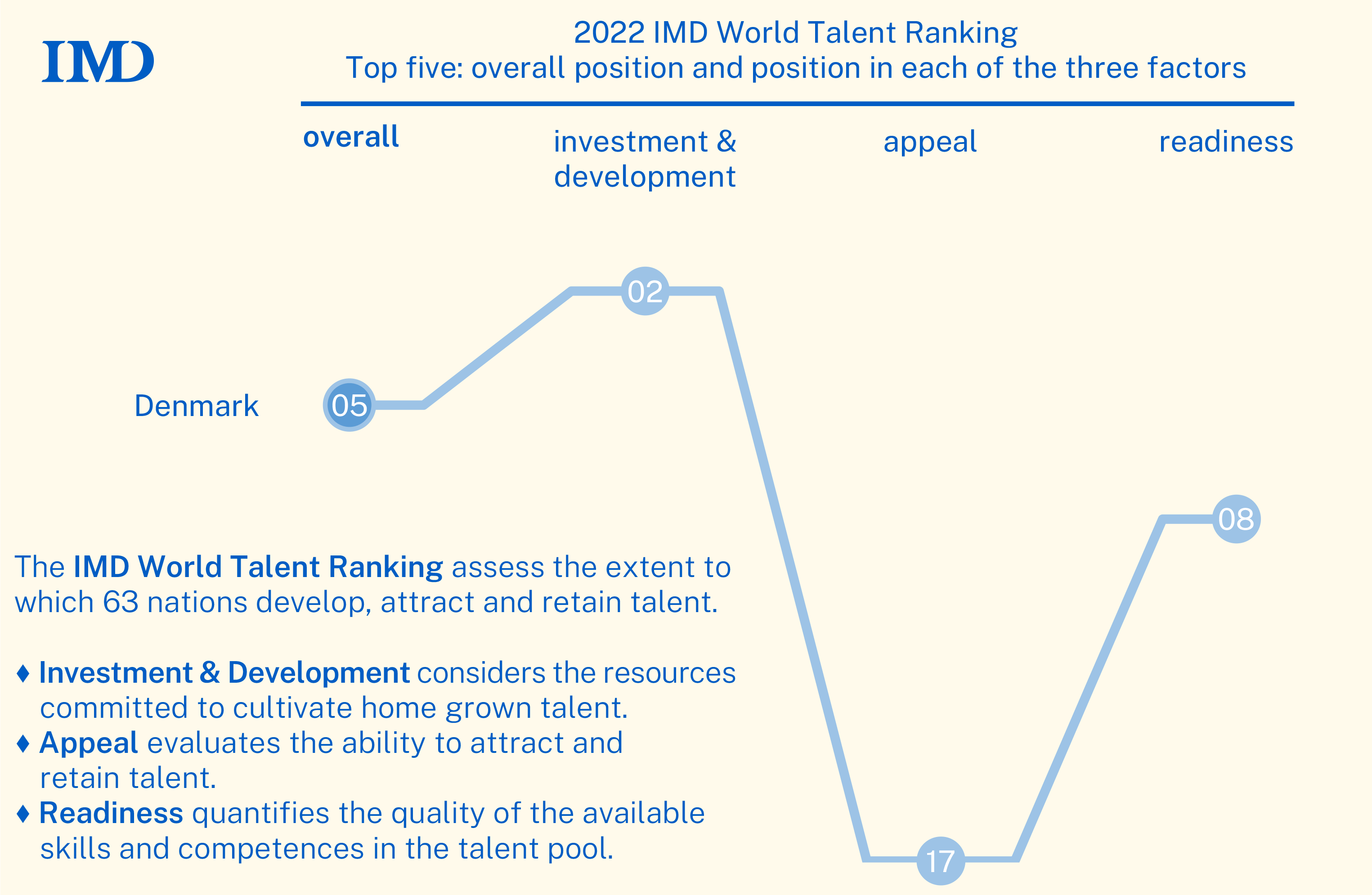 IMD World Talent Ranking metur getu hagkerfis til þess að þróa færni og hæfni mannauðsins sem ríki býr yfir, en einnig hvernig það laðar að sér fært fólk frá öðrum löndum, til að fullnægja eftirspurn vinnumarkaðarins og stuðla að aukinni samkeppnishæfni.