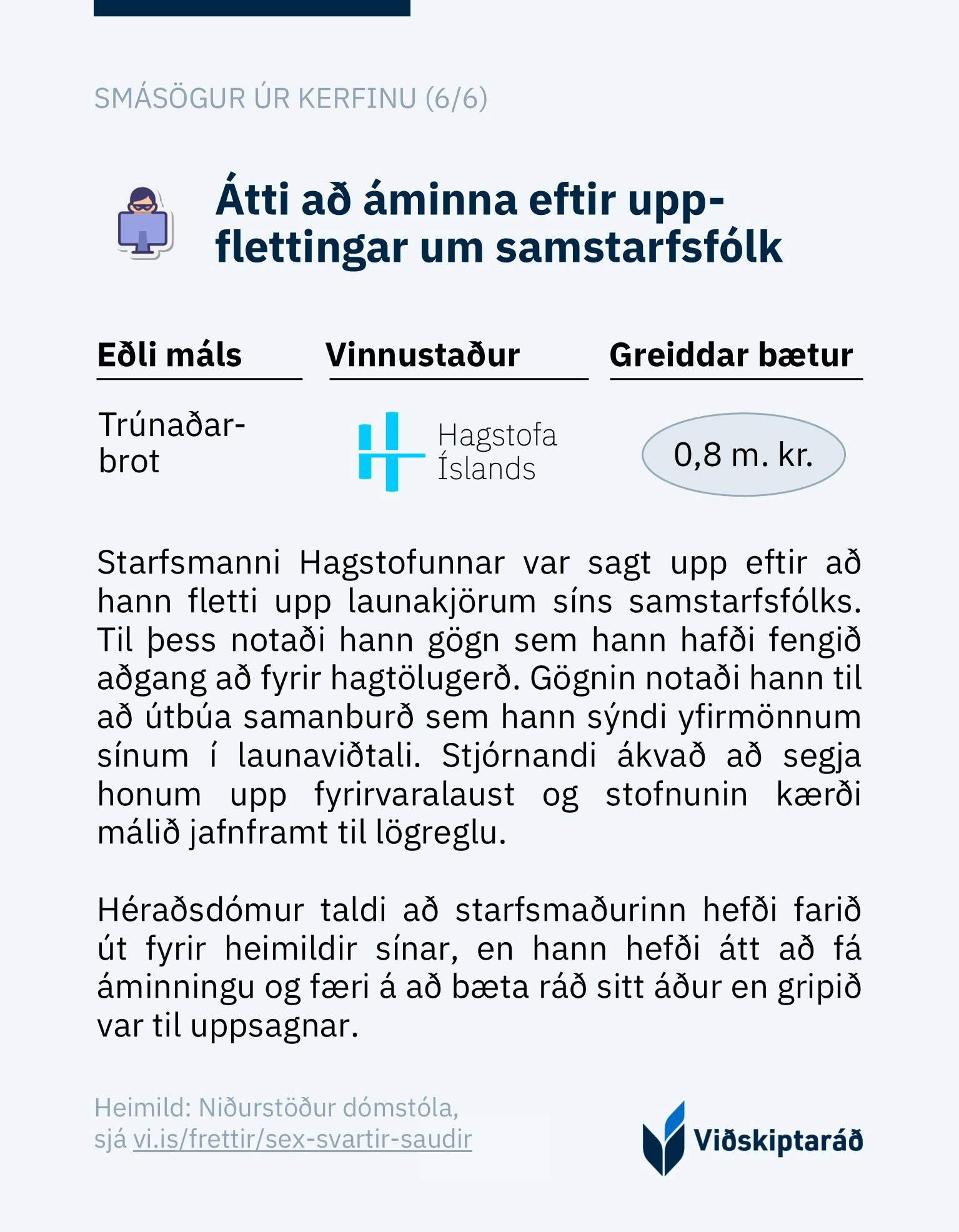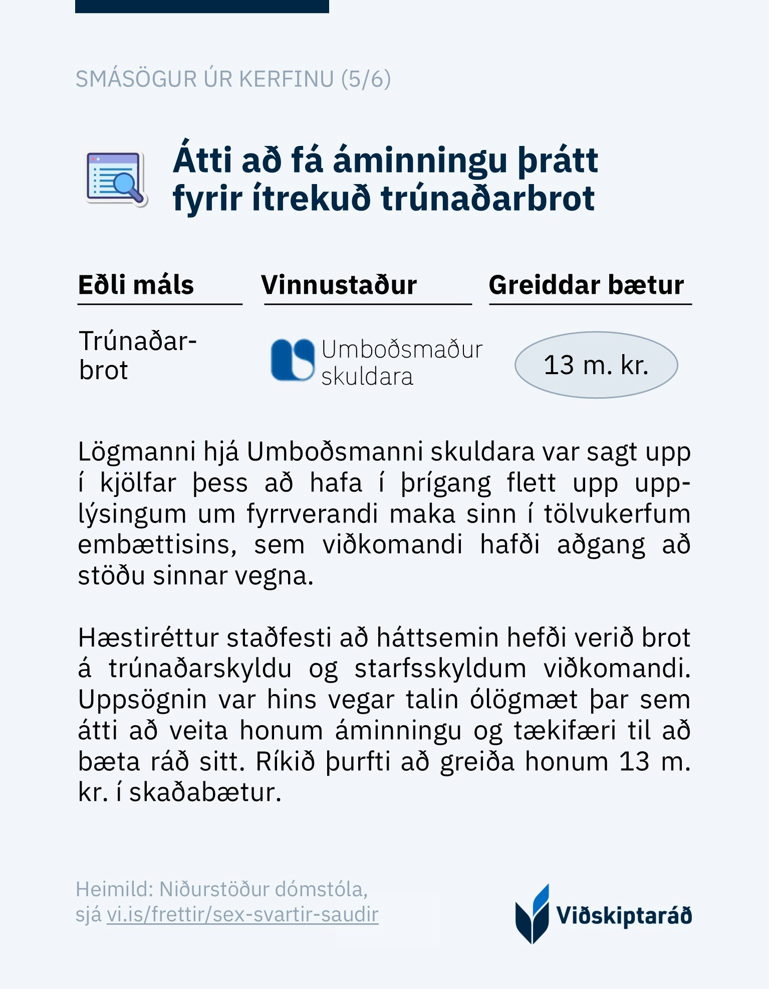 Birta sex sögur af „svörtum sauðum“ hjá hinu opinbera sem allir fengu milljónir í skaðabætur - dv.is, 27. maí 2025.