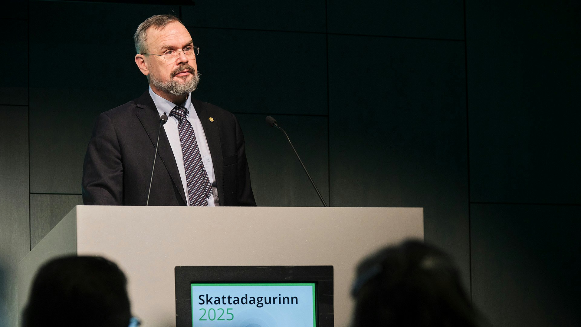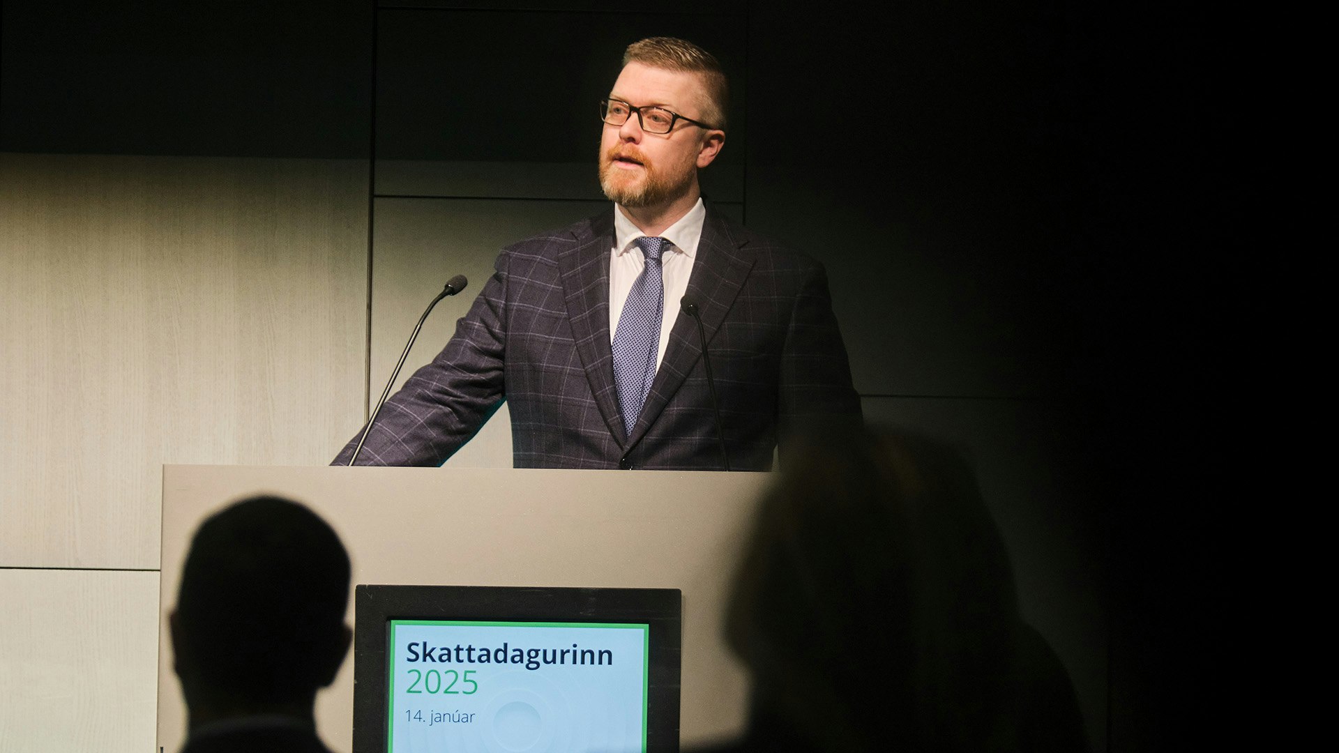 Daði Már Kristófersson, fjármála- og efnahagsráðherra, þreytti frumraun sína á Skattadeginum sem fram fór í dag. Fjallað var um skatta á breiðum grunni á fundinum sem fram fór fyrir fullum sal í Hörpu.