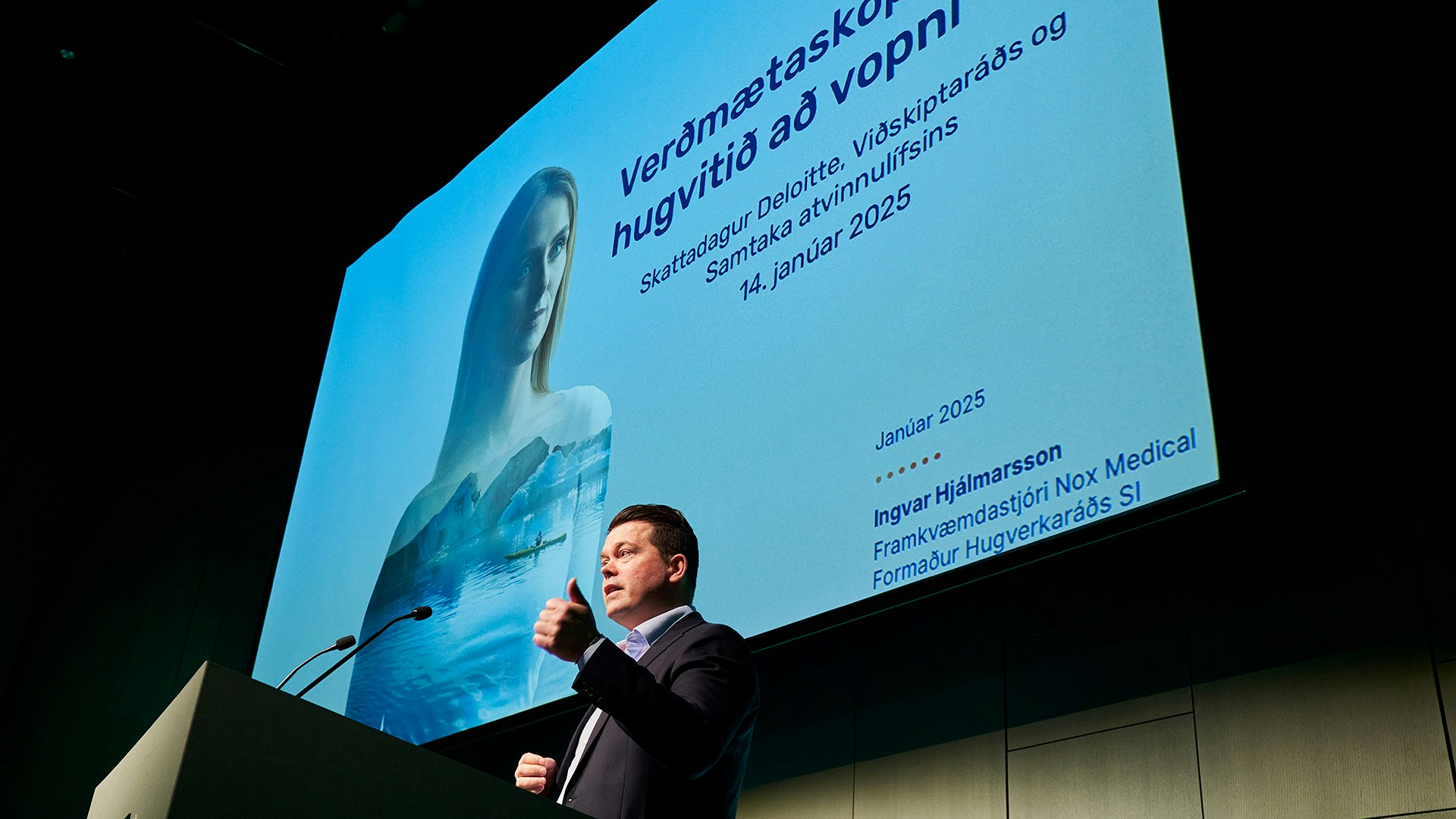 Ingvar Hjálmarsson, framkvæmdastjóri Nox Medical og formaður Hugverkaráðs, fjallað um verðmætasköpun með hugvitið að vopni. Þar fór hann yfir sögu Nox Medical og þróun á stuðningsumhvefi nýsköpunar og áhrif þess á fyrirtækið. Þess á milli voru flutt örinnslög frá nýsköpunarfyrirtækjum. Fundarstjórn var í höndum Heiðrúnar Gísladóttur, lögmanns hjá Samtökum atvinnulífsins.