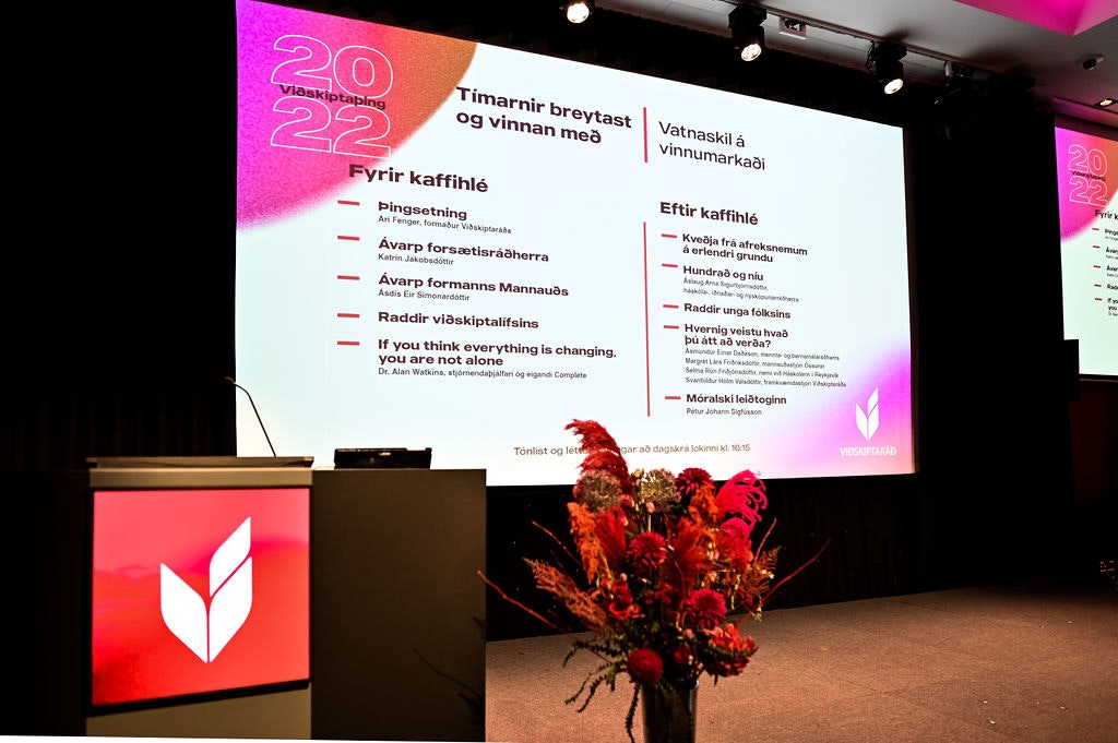 Almennt hefur Viðskiptaþing verið haldið í febrúar ár hvert en vegna heimsfaraldurs eru rúm tvö ár liðin frá því að unnt var að halda viðburðinn með hefðbundnu sniði.
