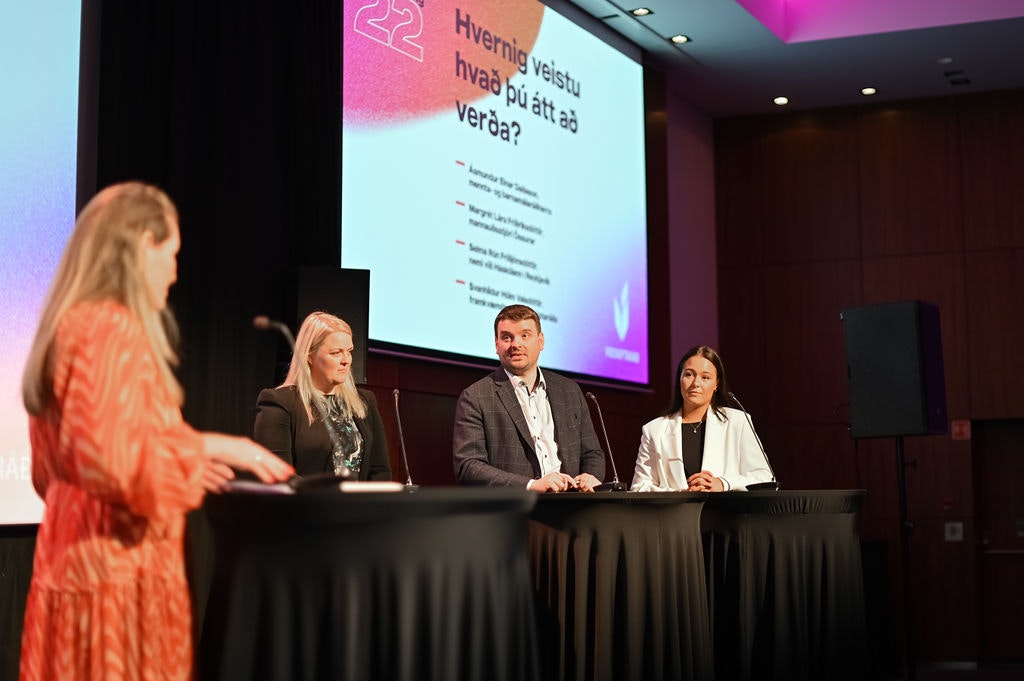 Þá ræddu þau Ásmundur Einar Daðason, barna- og menntamálaráðherra, Margrét Lára Friðriksdóttir, mannauðsstjóri Össurar, og Selma Rún Friðjónsdóttir, háskólanemi, um menntakerfið og samspil þess við atvinnulífið í panel undir stjórn Svanhildar Hólm Valsdóttur, framkvæmdastjóra Viðskiptaráðs.