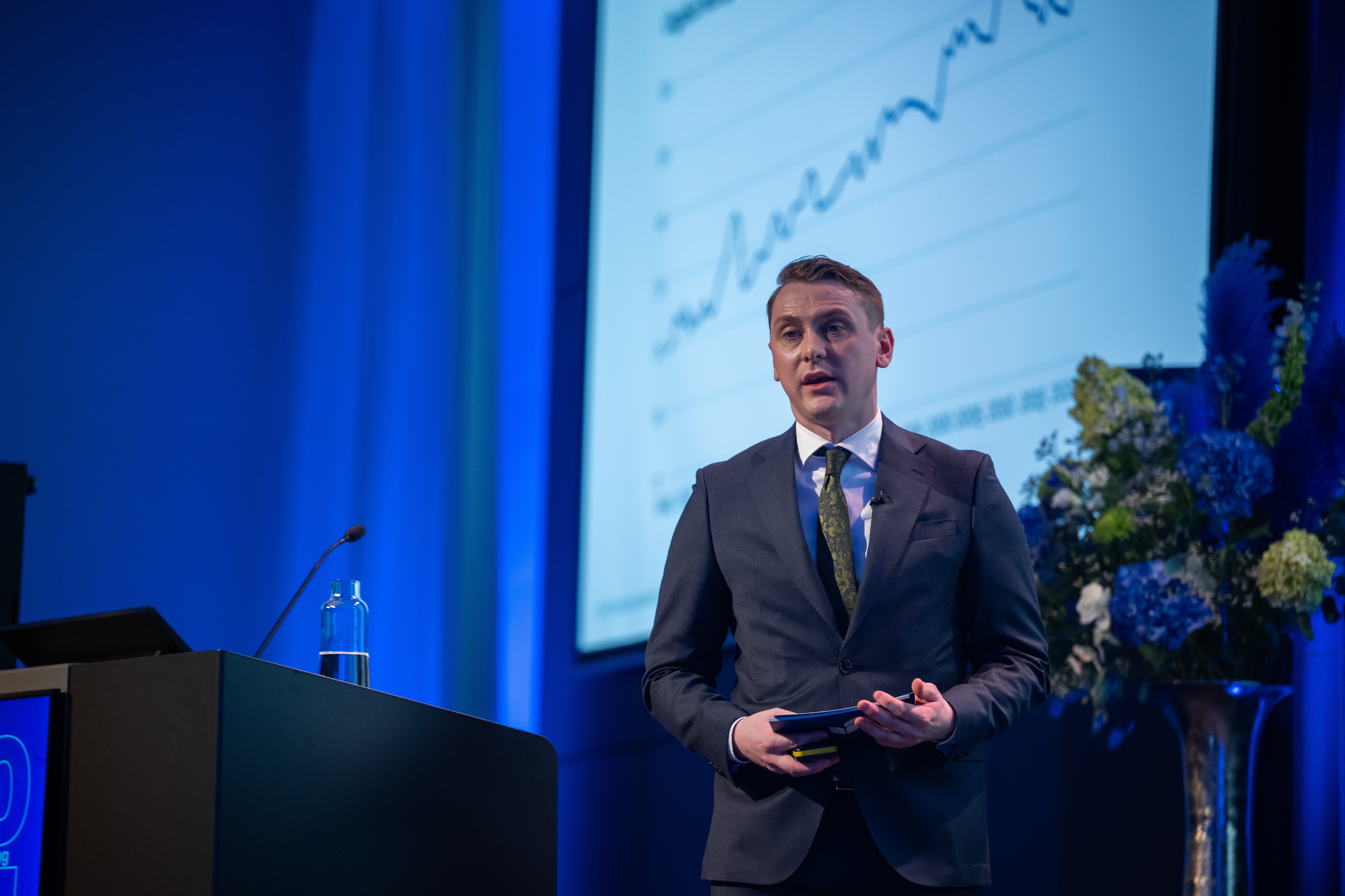 Ari fór svo yfir sín viðburðaríku fjögur ár sem formaður Viðskiptaráðs, en heimsfaraldur, stríð og jarðhræringar hafa einkennt þann tíma og hvatti íslenskt atvinnulíf áfram til aukinnar verðmætasköpunar. Hann lauk svo ávarpi sínu á því að þakka fyrir ánægjulegt samstarf og bauð nýjan formann Viðskiptaráðs, Andra Þór Guðmundsson, forstjóra Ölgerðarinnar, velkominn til starfa. Andri hélt stutt ávarp, þar sem hann áréttaði mikilvægi þess að grípa þau tækifæri sem væru til staðar á Íslandi og að Viðskiptaráð héldi áfram að vera öflugt hreyfiafl til góðra verka.