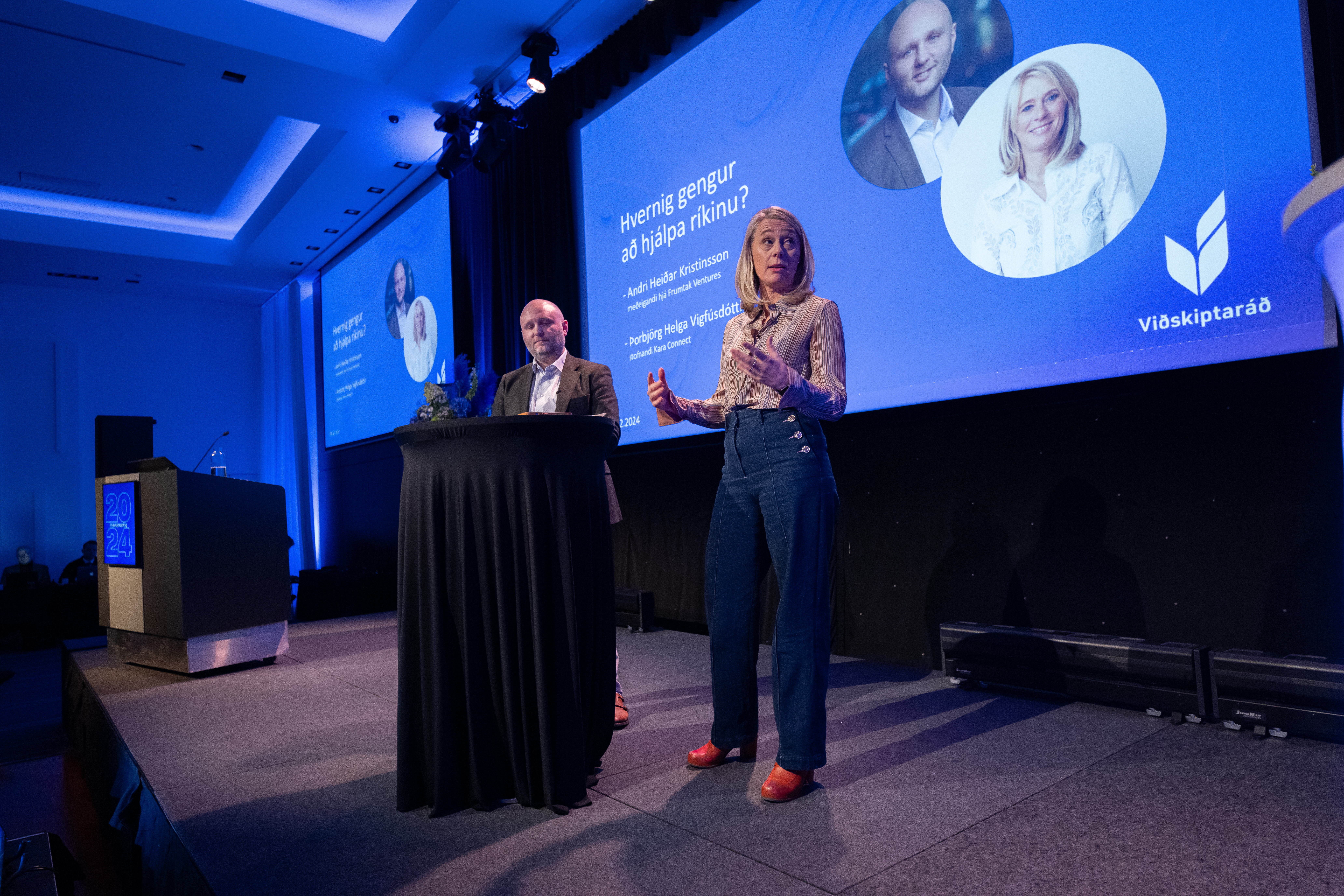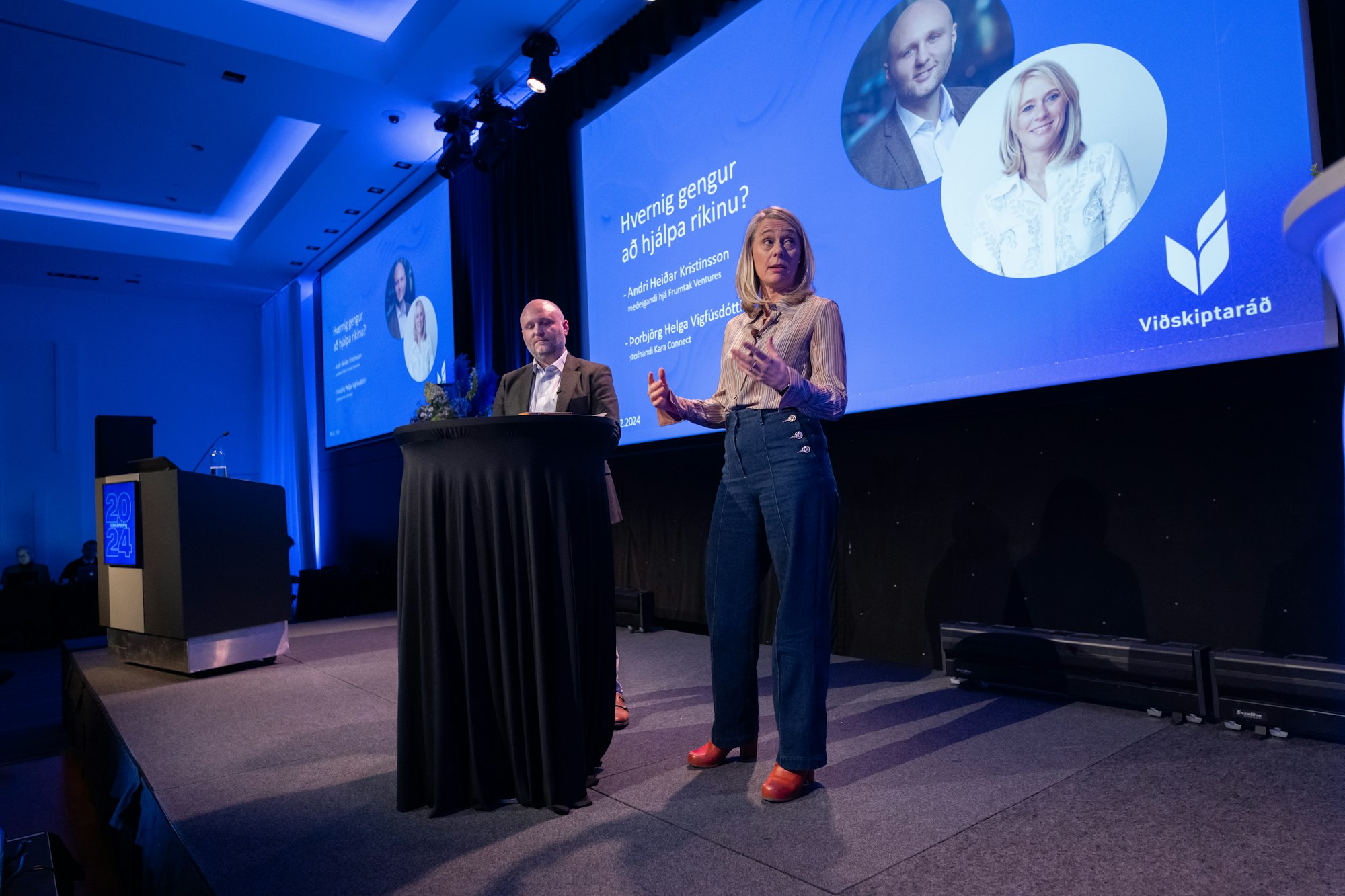 Að erindi Gunnars loknu tók við pallborð þar sem Þorbjörg Helga Vigfúsdóttir, stofnandi Kara Connect og Andri Heiðar Kristinsson, meðeigandi hjá Frumtak Ventures og stafrænn leiðtogi Stafræns Íslands, fjölluðu um hvernig gengi að hjálpa ríkinu, þ.e. að innleiða tæknilausnir í þjónustu hins opinbera. Þar fjallaði Þorbjörg um mismunandi viðhorf til tæknilausna hérlendis og erlendis og baráttu sína við að fá tæknilausnir í heilbrigðiskerfinu innleiddar hérlendis. Andri ræddi þau tækifæri sem eru í opinbera kerfinu til að stafvæða ákveðna ferla og fylgja því eftir í gegnum kerfið, t.a.m. með samrekstri gagnagrunna.