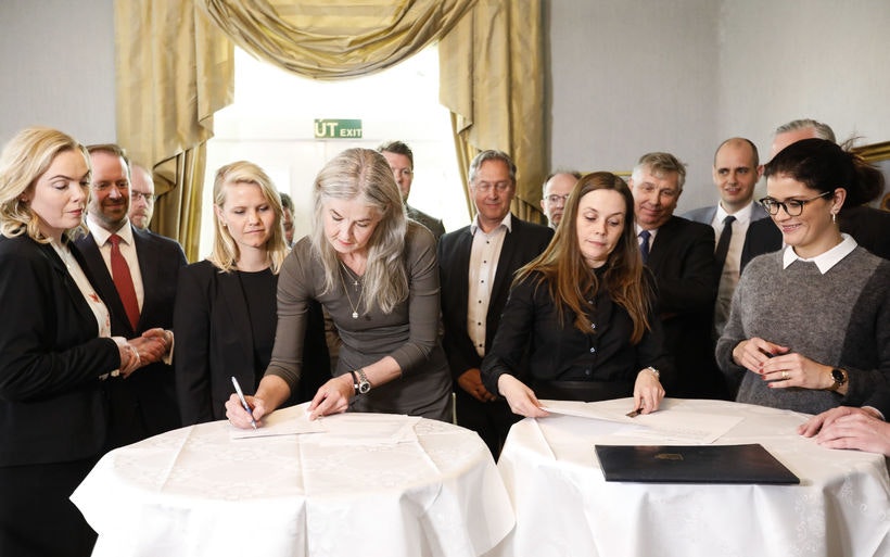 Skrifað var undir stofnun samstarfsvettvangs stjórnvalda og fjölda stórra aðila í atvinnulífinu um samstarf í loftslagsmálum.