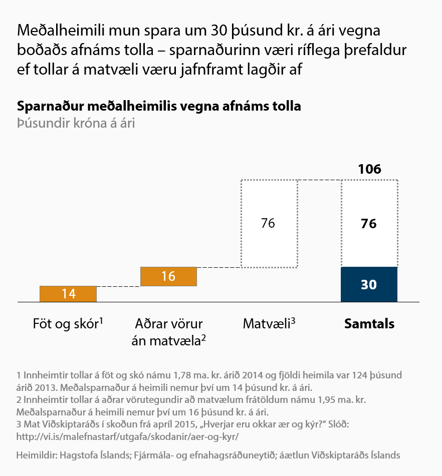 Viðskiptaráð fagnar áformum fjármála- og efnahagsráðherra um að afnema alla tolla aðra en matartolla fyrir árið 2017. Í aðgerðunum felst skattalækkun sem leiðir til lægra vöruverðs og aukins kaupmáttar. Samkvæmt áætlun ráðsins munu breytingarnar draga úr útgjöldum meðalheimilis um 30 þúsund krónur á …