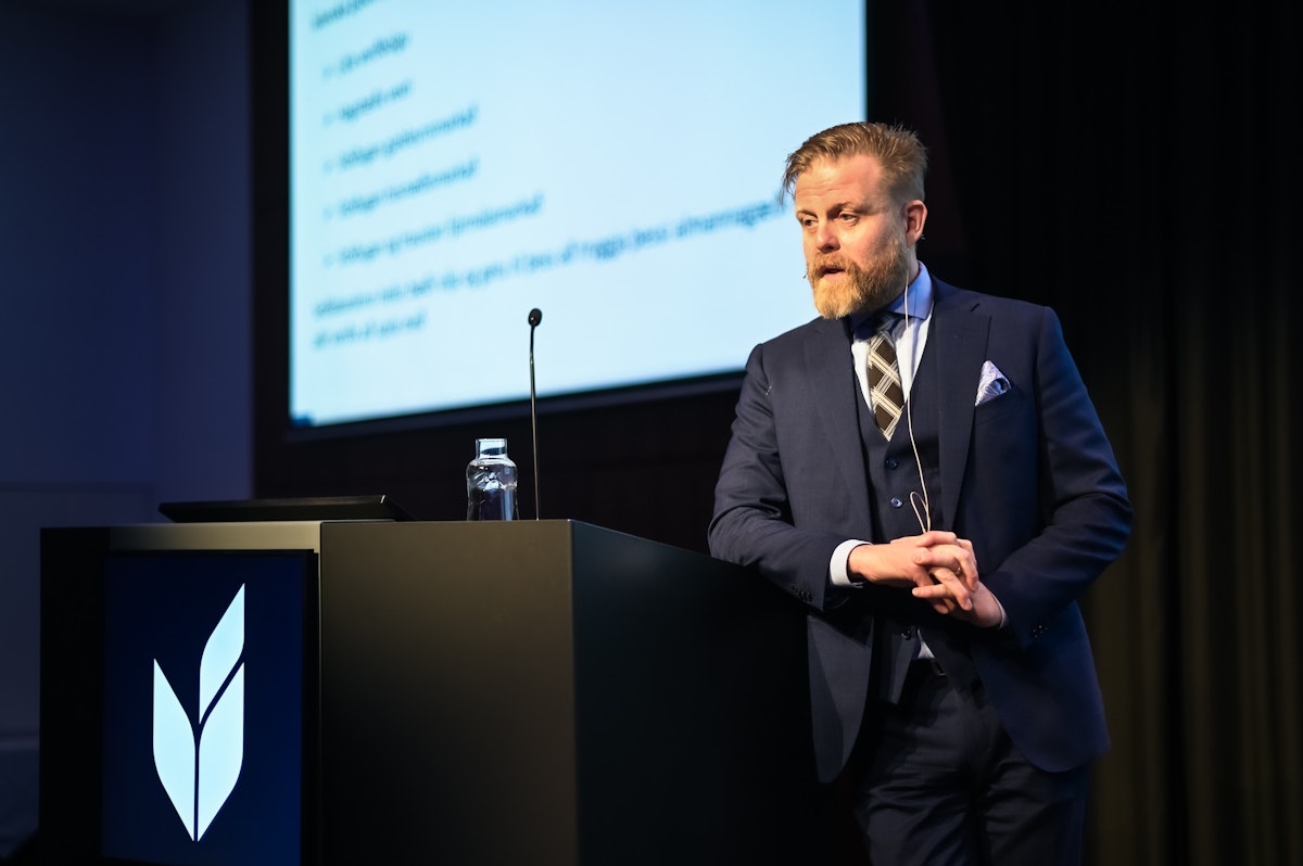 Ari Fenger flutti opnunarávarp á Viðskiptaþingi 2024. Þetta var hans síðasta embættisverk sem formaður en Andri Þór Guðmundsson tók við sem formaður í byrjun febrúar.