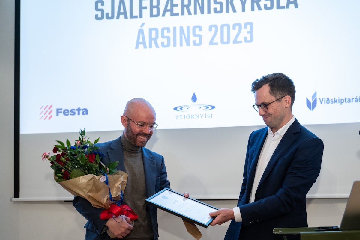 Viðurkenning fyrir sjálfbærniskýrslu ársins var veitt í hádeginu við hátíðlega athöfn