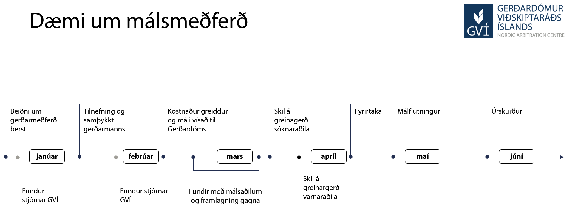Aðilar að samningi geta komið sér saman um að ágreiningsmál sem upp koma þeirra á milli verði leyst fyrir gerðardómi í stað almennra dómstóla. Ágreiningurinn er þá leystur fyrir sjálfstæðum og hlutlausum gerðardómi, en aðilar hafa möguleika á að tilnefna gerðardómara sem eru í kjölfarið staðfestir af stjórn GVÍ. Kostir gerðarmeðferðar eru almennt taldir vera styttri málsmeðferðartími, trúnaður sem gildir um málsmeðferðina og víðtækt málsforræði aðila yfir málsmeðferðinni. Úrlausn gerðardóms er endanlega bindandi fyrir aðila og er auðvelt að fullnusta úrlausnir gerðardóma um nær allan heim.