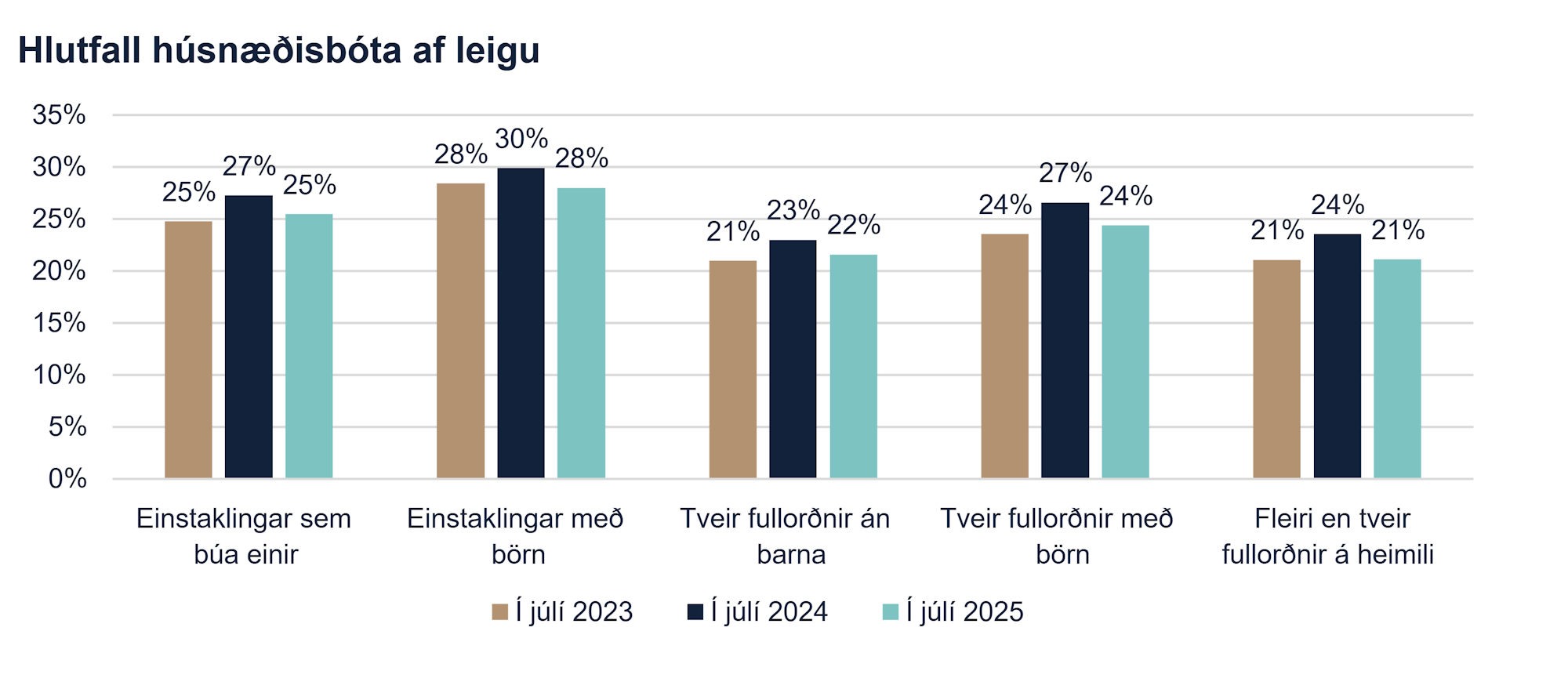Í skýrslu HMS kemur fram að árið 2024 hafi stofnunin greitt út húsnæðisbætur til 21.000 heimila. Í lok árs voru tæplega 22.000 leigusamningar skráðir hjá HMS, svo húsnæðisbótakerfið nær til stórs hluta leigumarkaðarins. [2]