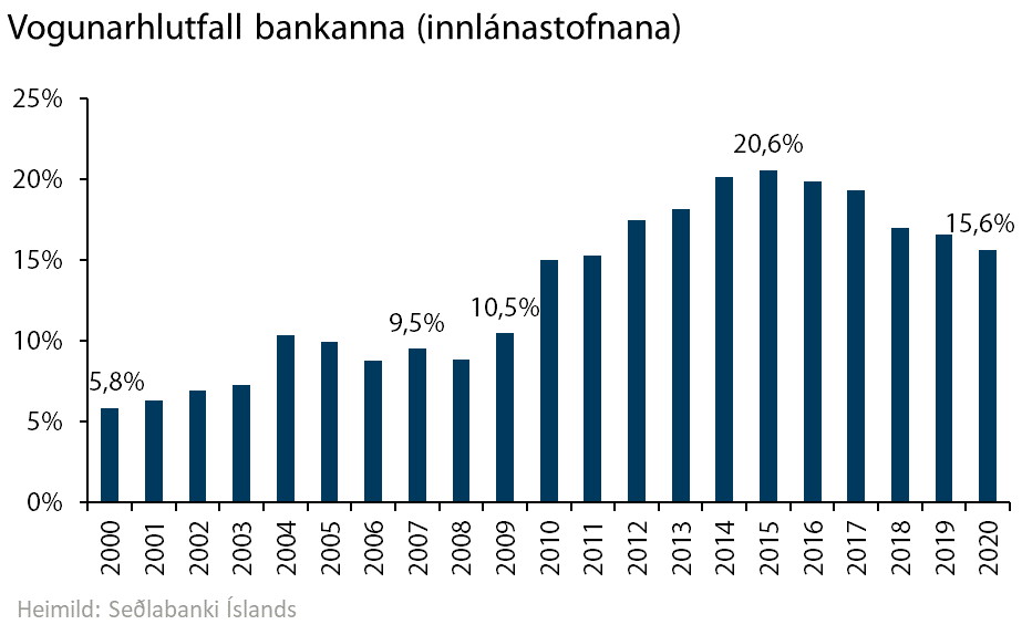 Í öðru lagi hefur Gylfi áhyggjur af því að hugsanlegir verðandi eigendur Íslandsbanka lækki eigið fé bankans með arðgreiðslum sem muni draga úr lánveitingum til heimila og fyrirtækja og vísaði þar til Arion banka. Hér þarf að staldra við. Á árunum fyrir fjármálakreppu var hlutfall eigin fjár í bankakerfinu mun lægra en samt jukust útlán um tugi prósenta á hverju ári. Enda er það svo að margt annað en arðgreiðslur hefur ráðandi áhrif á útlánagetu, t.d. regluverk og rekstrarumhverfi. Þá er staðreyndin sú, án þess að hér sé mælt með því, að lækkun eiginfjárhlutfalls getur einnig endurspeglað aukinn útlánavöxt. Fleiri þættir í ytra umhverfinu, t.d. skattlagning, beiting peningastefnu og lausafjárkröfur, geta haft afgerandi áhrif. Það er allavega mótsagnakennt að vara við því að einkaaðilar fari of glæfralega í bankarekstri á sama tíma og það er varað við því að bankar í eigu einkaaðila dragi saman seglin.
