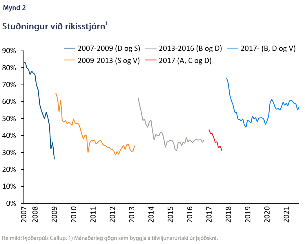 Það er síendurtekið þema að kjósendur verði fyrir vonbrigðum fljótlega í kjölfar ríkisstjórnaskipta. Að hluta gæti þetta skýrst af erfiðleikum flokkanna við að standa við loforð sín þegar á hólminn er komið. Þarf þá að horfast í augu við svigrúm í ríkisfjármálum og málamiðlanir vegna ólíkra sjónarmiða innan ríkisstjórnarinnar.