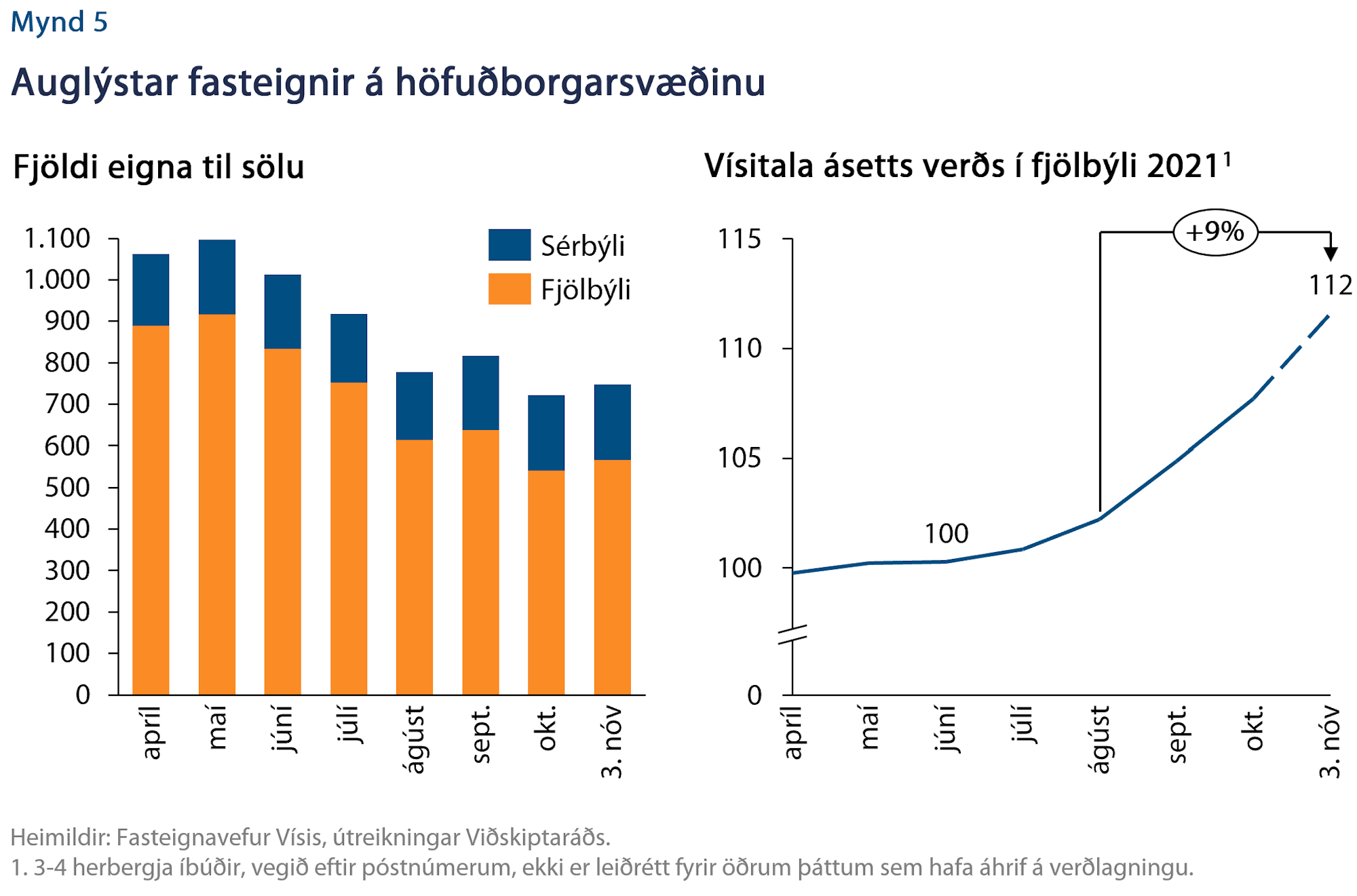 Söluframboð á höfuðborgarsvæðinu hefur áfram dregist saman frá því í byrjun sumars og hefur síðan haldist lítið (mynd 5). Að því leytinu til er ekki að sjá vísbendingar um að það sé að hægja á eftirspurn. Árið 2017 var aukið söluframboð fyrsta merkið sem sást um að hægja tæki á verðhækkunum, en þó er ekki hægt að fullyrða að slík breyting þurfi að eiga sér stað nú.