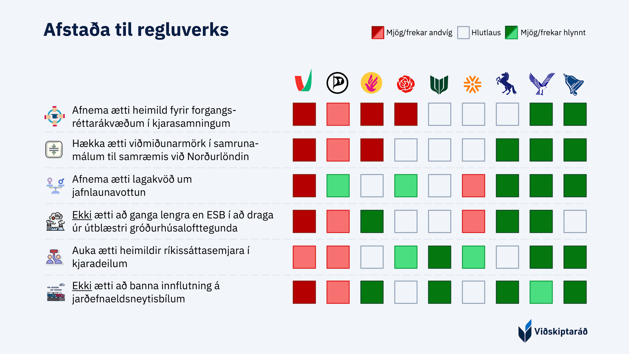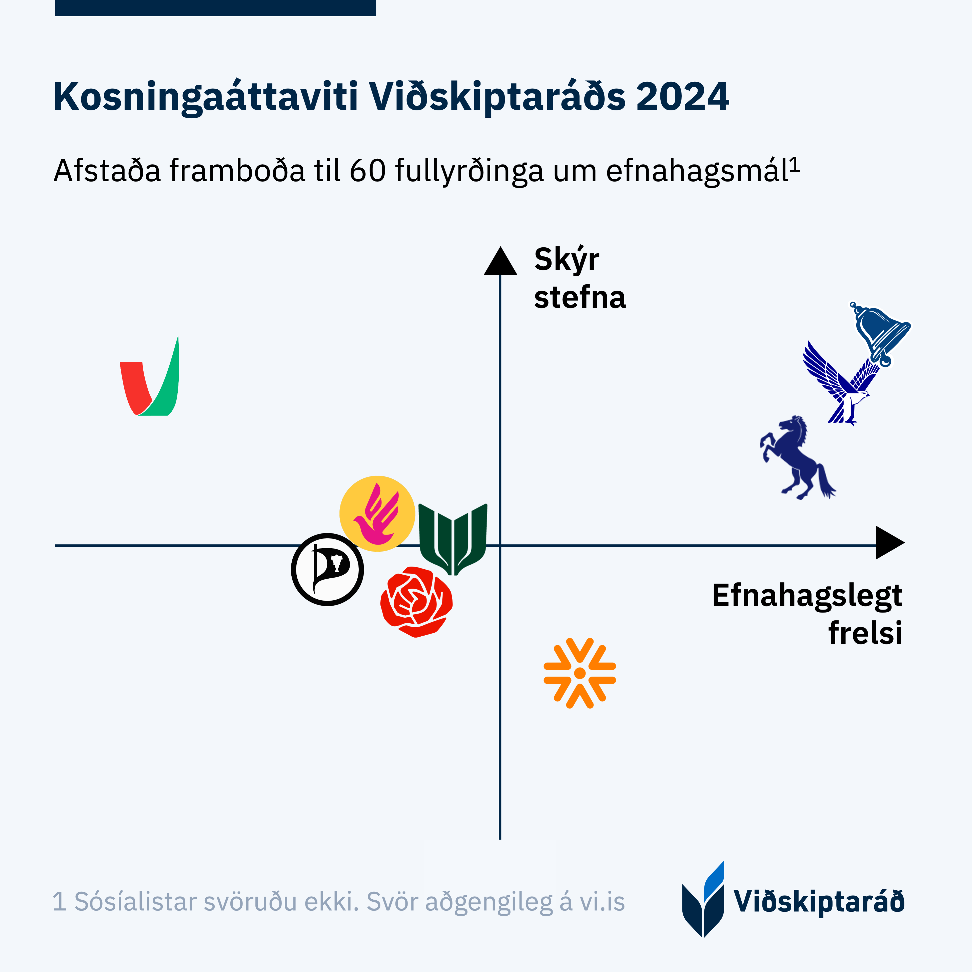 [1] Sósíalistaflokkur Íslands svaraði ekki spurningum Viðskiptaráðs og er því ekki á kosningaáttavita ráðsins.