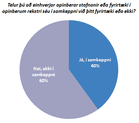 40% forsvarsmanna fyrirtækja í íslensku atvinnulífi telja opinberar stofnanir eða fyrirtæki í opinberum rekstri vera í samkeppni við sitt fyrirtæki. Þá telja 51% fyrirtækja í þjónustu sig vera í samkeppni við hið opinbera, 49% fyrirtækja í verslun og 58% fyrirtækja í byggingar- eða verktakastarfsemi.