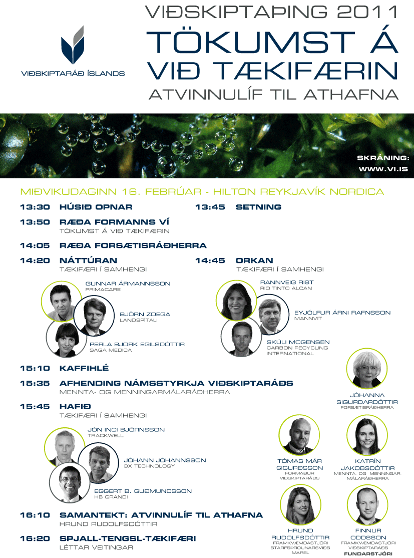 Á morgun, miðvikudaginn 16. febrúar, fer fram árlegt Viðskiptaþing Viðskiptaráðs Íslands. Í ár er þingið haldið undir yfirskriftinni „Tökumst á við tækifærin - Atvinnulíf til athafna, en umfjöllunarefni þess eru þau fjölbreyttu tækifæri sem byggja á grunnstoðum íslensks atvinnulífs.