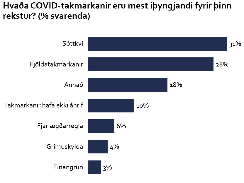 Atvinnulífið ber ýmiskonar kostnað og hefur orðið fyrir óhagræði vegna sóttvarnaaðgerða. Þannig hafa fjölmörg fyrirtæki ekki getað unnið á fullum afköstum síðustu misseri.