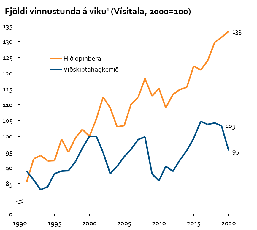 Tæplega þrjátíu prósent vinnuaflsins starfa hjá ríki og sveitarfélögum og ríkið eitt ráðstafar um það bil þriðju hverri krónu sem er varið hér á landi.
