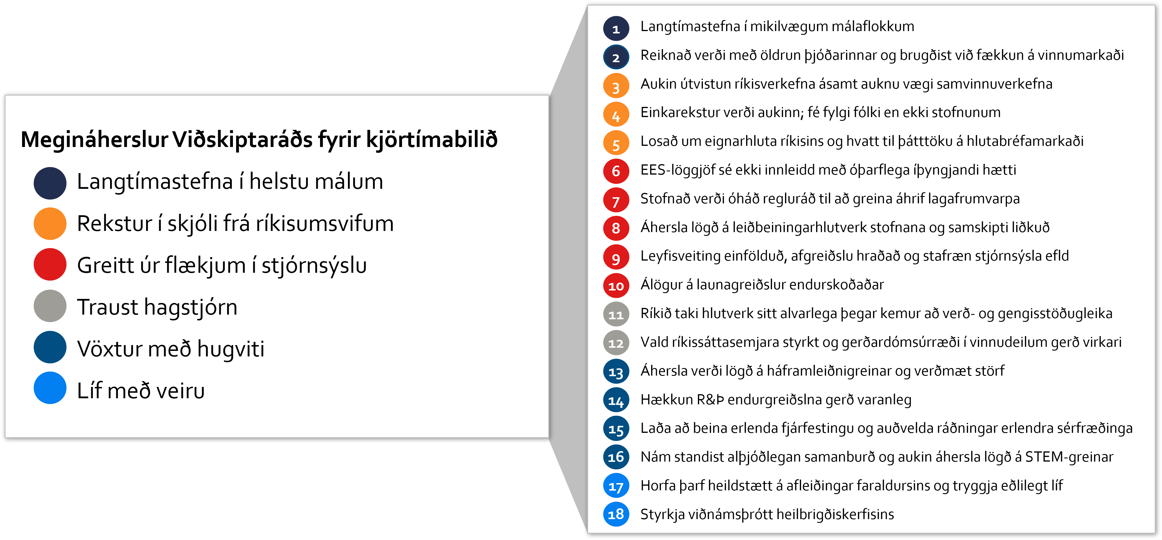 Ísland hefur mælst neðarlega meðal nágrannalanda þegar kemur að því að móta og hrinda í framkvæmd langtímastefnu í helstu málaflokkum. Slík stefnumótun eykur traust og skapar grundvöll fyrir nauðsynlegar fjárfestingar og framþróun. Þannig má stuðla að meiri verðmætasköpun og aukinni velferð.