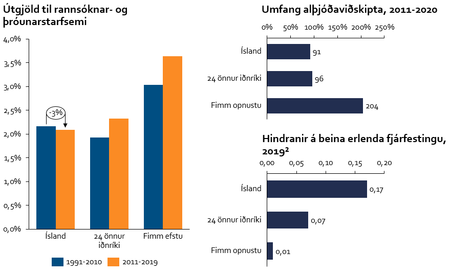 Með því að leggja áherslu á að byggja upp með hugviti verður hagkerfið ekki eins viðkvæmt og það er nú fyrir sveiflum í auðlindadrifnum atvinnugreinum. Með hugvitsdrifnum útflutningsgreinum í alþjóðageiranum má skjóta stoðum undir breiðari og meiri utanríkisviðskipti en þau eru töluvert umfangsminni en margur telur og stendur Ísland til dæmis fimm efstu þjóðum í alþjóðaviðskiptum töluvert að baki. Í skýrslu Viðskiptaþings 2021 voru kynntar til sögunnar ítarlegar tillögur alþjóðahóps Viðskiptaráðs um alþjóðageirann.