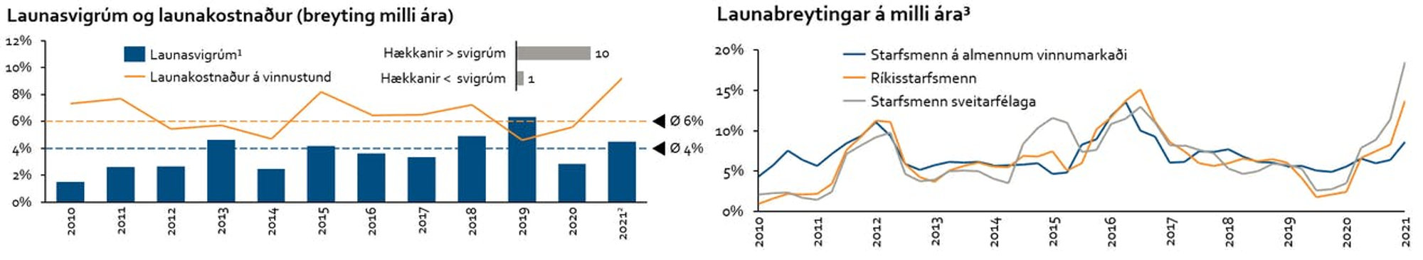 Hið opinbera má ekki leiða launahækkanir. Þær hafa verið með ósjálfbærum takti síðustu misseri með 18% launahækkunum opinberra starfsmanna frá upphafi faraldursins. Svo virðist sem skautun á vinnumarkaði hafi einnig aukist.