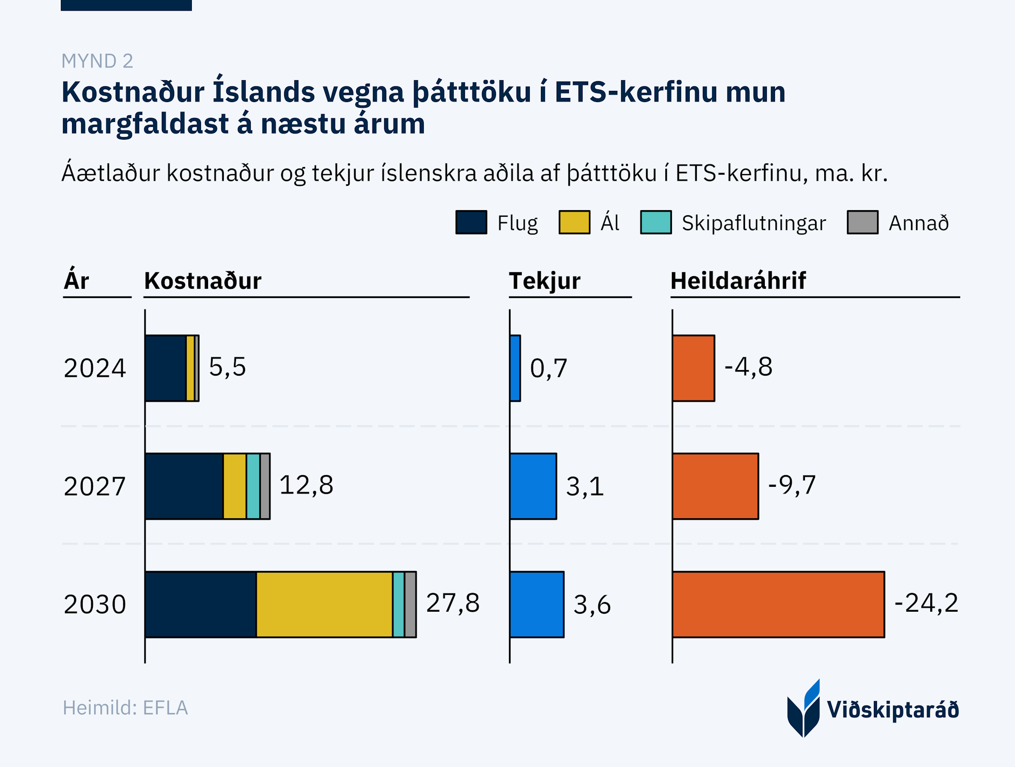 21 EFLA. (2025). „Samfélagsleg og efnahagsleg áhrif ETS kerfisins.“ Slóð: https://www.althingi.is/altext/pdf/157/fylgiskjol/s0624-f_I.pdf21 EFLA. (2025). „Samfélagsleg og efnahagsleg áhrif ETS kerfisins.“ Slóð: https://www.althingi.is/altext/pdf/157/fylgiskjol/s0624-f_I.pdf