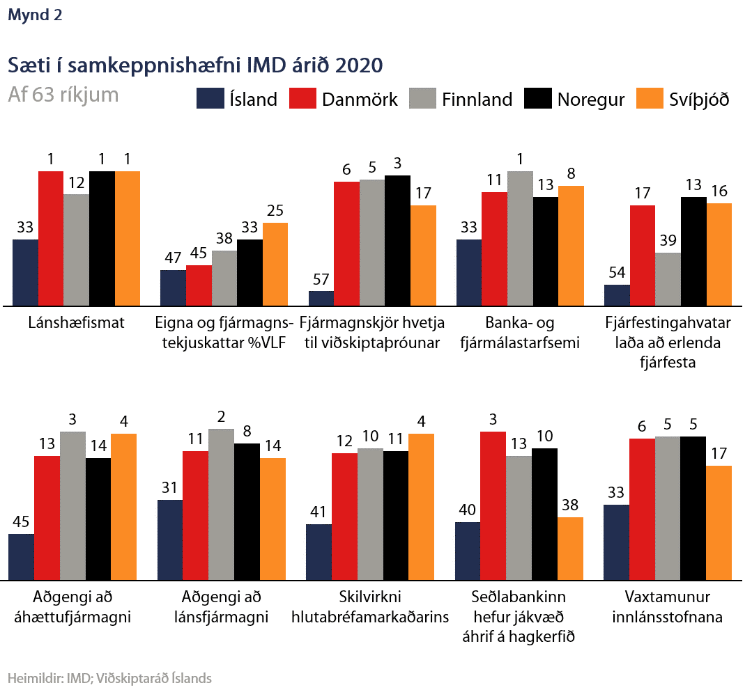 Á hverju ári gerir viðskiptaháskólinn IMD úttekt á samkeppnishæfni ríkja. Niðurstöður úttektarinnar gefa vísbendingar um stöðu þjóða og hvernig þeim muni vegna á komandi árum en mikil fylgni er á milli góðra lífskjara og mikillar samkeppnishæfni. Samkvæmt niðurstöðum fyrir 2020 er Ísland í 21. sæti í samkeppnishæfni og féll um eitt sæti á milli ára. Áhugavert er að rýna í þær stærðir sem ákvarða stöðu okkar en í úttekt IMD endurspeglast að Ísland stendur framarlega á mörgum sviðum, til dæmis hvað varðar atvinnustig, jafnrétti, menntun og ýmsa innviði.