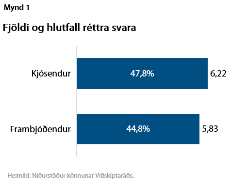 [1] Miðað er við þriðjung þar sem þriðjungslíkur voru á réttu svari ef svarað var handahófskennt, enda þrír svarmöguleikar við öllum spurningum.
