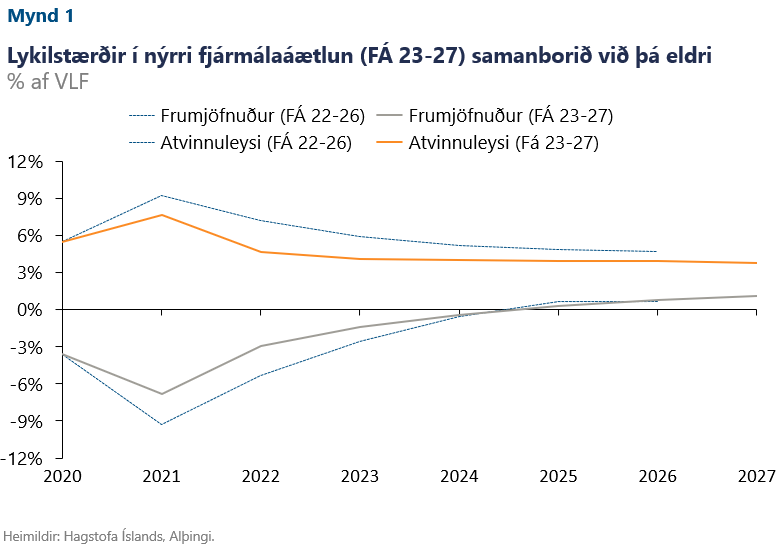 Í heimsfaraldrinum var skilyrðum um afkomu, skuldahlutfall og skuldaþróun vikið til hliðar til ársloka 2025. Hið opinbera taldi nauðsynlegt að hafa svigrúm umfram það sem reglurnar gefa, bæði hvað varðar afkomu og skuldahlutfall, til að auka útgjöld ríkissjóðs. Stjórnvöld telja að hægt verði að virkja fjármálareglurnar að nýju frá og með árinu 2026.