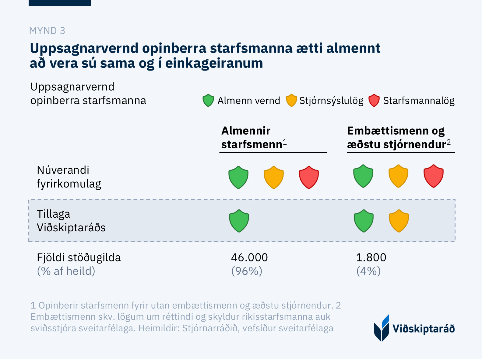 2 Sjá úttekt Viðskiptaráðs (maí 2025): „Svartir sauðir, glatað fé: uppsagnarvernd opinberra starfsmanna“. Slóð: https://vi.is/skodanir/svartir-saudir-glatad-fe