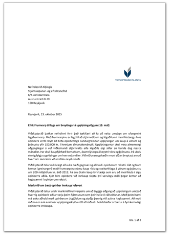 Viðskiptaráð hefur skilað inn umsögn til stjórnskipunar- og eftirlitsnefndar vegna frumvarps til laga um breytingu á upplýsingalögum. Með frumvarpinu er kveðið á um að stjórnvöldum og lögaðilum sem eru að 51% hluta eða meira í eigu hins opinbera skuli vera skylt að birta opinberlega sundurgreindar …
