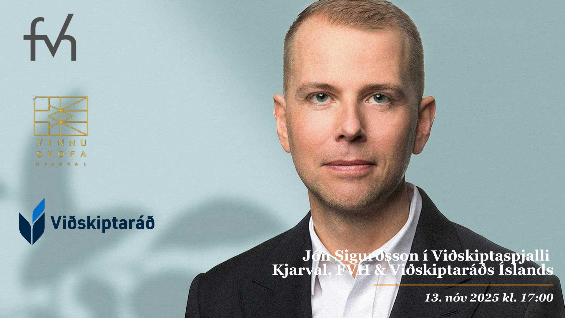 Jón mætir í Viðskiptaspjall Kjarval, FVH og Viðskiptaráðs þann 13. nóvember kl. 17.00. Skráning er hafin hér og rétt er að skrá sig sem fyrst, enda ekki á hverjum degi sem Jón gefur kost á sér í spjall af þessu tagi og búast má við húsfylli.