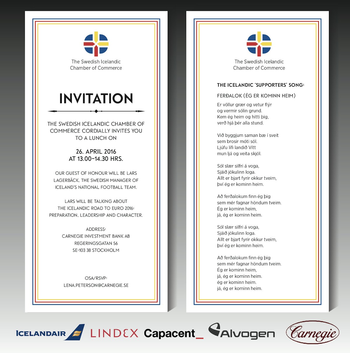Sænsk-íslenska viðskiptaráðið stendur fyrir hádegisverðarfundi í húsakynnum Carnegie Investment Bank AB í Stokkhólmi þann 26. apríl kl. 13.00-14.30. Sérstakur gestur fundarins er Lars Lagerbäck, landsliðsþjálfari karla í fótbolta og mun hann fara yfir vegferð sína með íslenska landsliðinu á EM 2016.