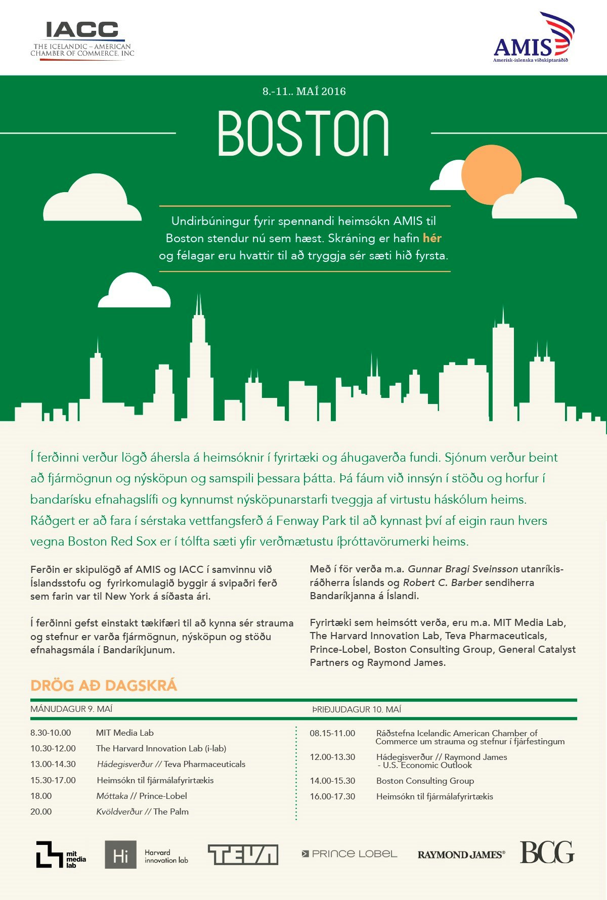 Amerísk-íslenska viðskiptaráðið og IACC standa fyrir heimsókn til Boston dagana 8.-11. maí nk. Í ferðinni verður lögð áhersla á heimsóknir í fyrirtæki og áhugaverða fundi. Sjónum verður beint að fjármögnun og nýsköpun og samspili þessara þátta. Þátttakendur fá innsýn í stöðu og horfur í bandarísku …