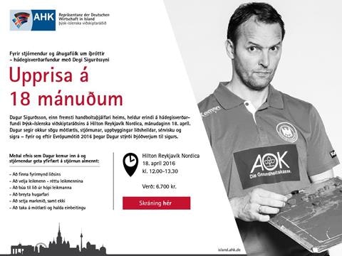 Einn fremsti handboltaþjálfari heims, Dagur Sigurðsson, heldur erindi á hádegisverðarfundi Þýsk-íslenska viðskiptaráðsins á Hilton Reykjavík Nordica mánudaginn 18. apríl kl.12.00-13.30. Dagur segir frá sögu mótlætis, stjórnunar, uppbyggingar liðsheildar, sérvisku og sigra – fyrir og eftir …