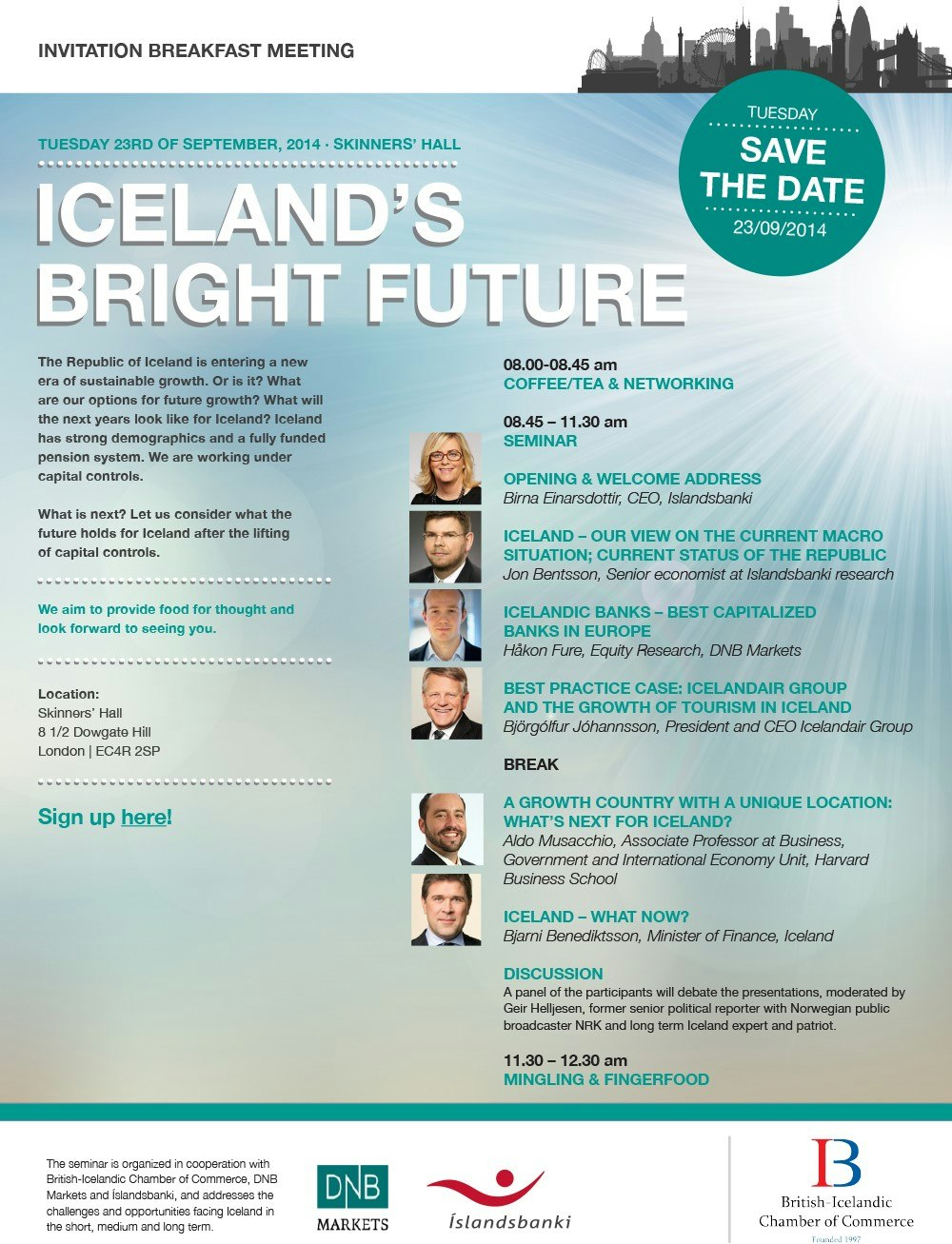 Bresk-íslenska viðskiptaráðsins stendur fyrir morgunverðarfundi þann 23.september í London, undir yfirskriftinni Iceland´s Bright Future. Þar mun DNB bankinn kynna greiningu á Íslandi, íslensku efnahagslífi og íslenska bankakerfinu. Håkan Fure, einn þekktasti greinandi á fjármálamarkaði í Noregi, …