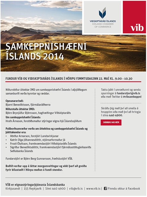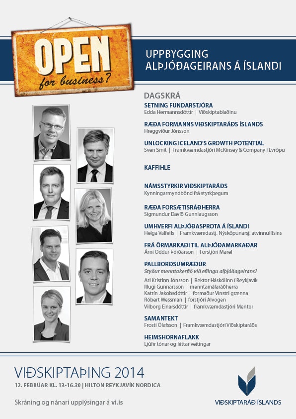 Viðskiptaþing 2014 er haldið undir yfirskriftinni Open for business? - Uppbygging alþjóðageirans á Íslandi. Þar verður fjallað um það hvort Ísland sé nægjanlega opið fyrir alþjóðlegum viðskiptum og hvernig efla megi alþjóðageirann á Íslandi. Hvort tveggja eru afar mikilvægar spurningar í tengslum …