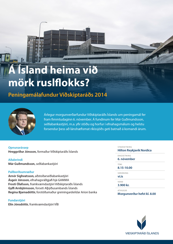 Árlegur peningamálafundur Viðskiptaráðs Íslands fer fram þann 6. nóvember kl. 8.15-10.00 á Hilton Reykjavík Nordica. Yfirskrift fundarins er „Á Ísland heima við mörk ruslflokks?“ Á fundinum fer Már Guðmundsson, seðlabankastjóri, m.a. yfir stöðu og horfur í efnahagsmálum og helstu forsendur þess að …
