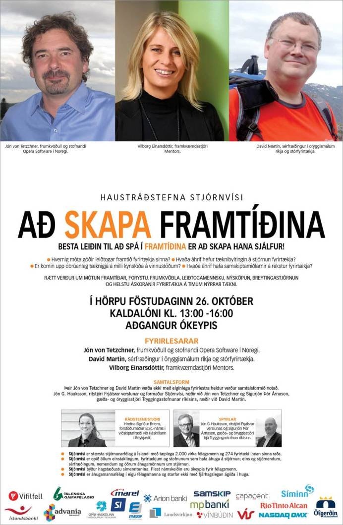 Hvernig móta góðir leiðtogar framtíð fyrirtækja sinna? Hvaða áhrif hefur tæknibyltingin á stjórnun fyrirtækja? Er komin upp óbrúanleg tæknigjá á milli kynslóða á vinnustöðum? Hvaða áhrif hafa samskiptamiðlarnir á rekstur fyrirtækja? Á ráðstefnunni verður rætt um mótun framtíðar, forystu, frumkvöðla, …